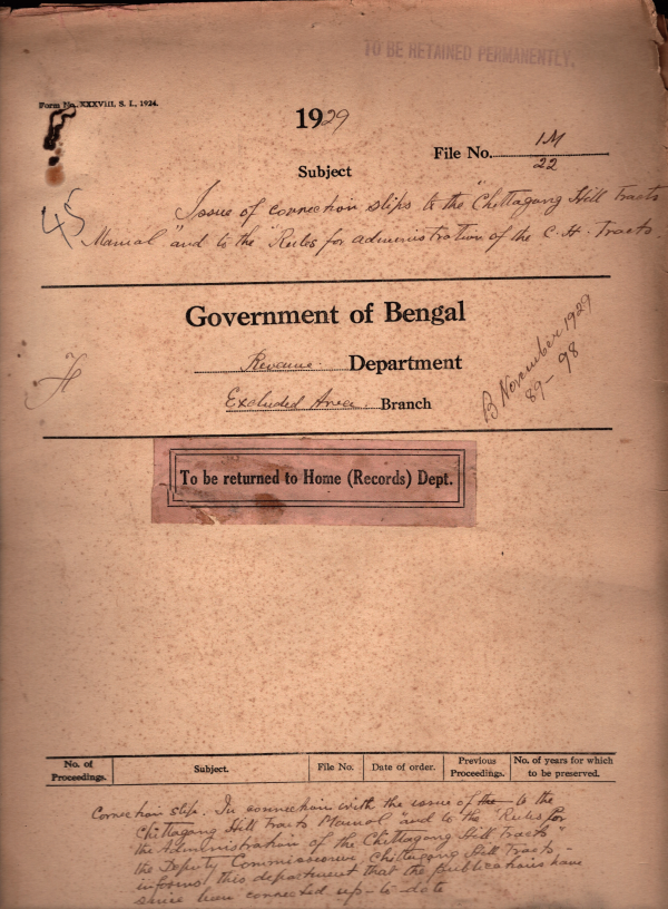 Issue of connection slips to the Chittagong Hill Tracts Manual and to the Rules for administration of the Chittagong Hill Tracts.