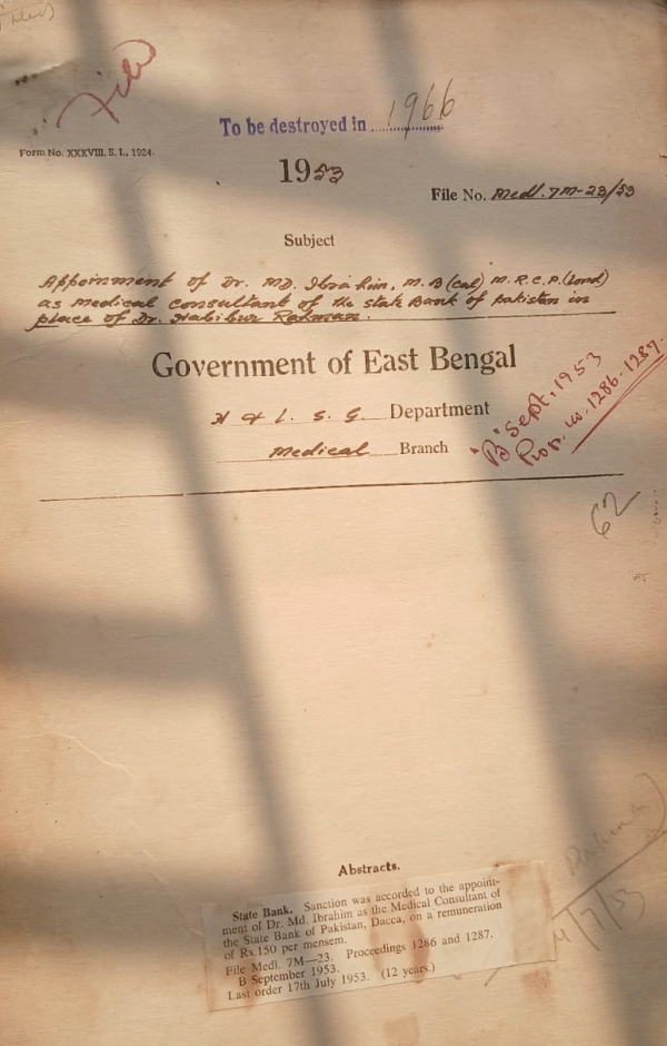 Appointment of Dr. Md. Ibrahim M.B (Col) M.R.C.P as medical consultant of the state Bank Consultant of the State Bank of Pakistan Place of Dr. Habibur Rahman.