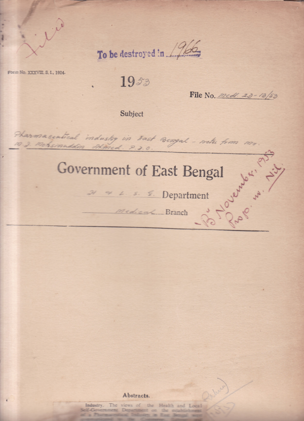 Pharmaceutical industry in E.B. notes from Mr. M.I. Mohsinuddin Ahmed.