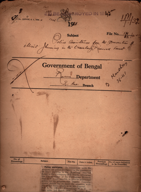 Police assistance for the presentational illicit Jhuming in the Kasalong reserved Forest.