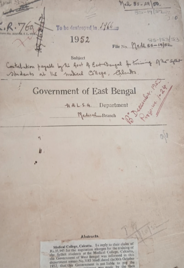Contribution payable by the govt. of E.B. for training of the Sylhet Students at the Medical College, Calcutta.