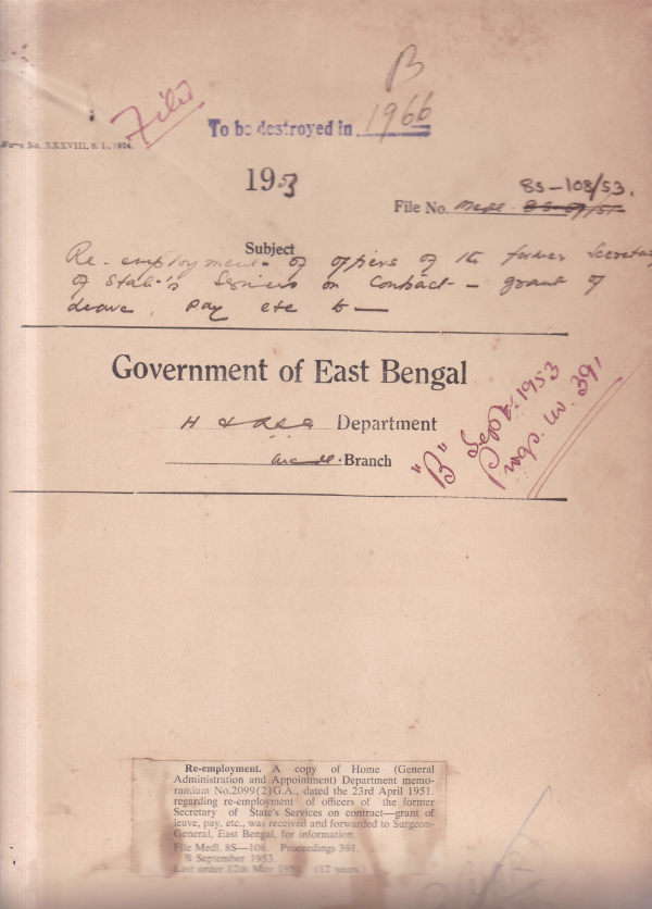 | Rack No. 10, Bundle No. 124, Sl No. 10253 Audit report on the accounts of the famine relief expenditure including free Hospital Khulna to Sadar hospital. | Rack No. 10, Bundle No. 124, Sl No. 10254 Provincial hospital Kishrgonj by the local multipurpose society. | Rack No. 10, Bundle No. 124, Sl No. 10255 The total member of surgeons in pakistan 1951 and the steps taken producing more export Surgeons. | Rack No. 10, Bundle No. 124, Sl No. 10256 Reemployment of officers of the former secretary of state's services on conduct grant of leave pay etc of. | Rack No. 10, Bundle No. 124, Sl No. 10257 Allowance of the A.G.E.D. in the meeting o f the travelling at Karachi. | Rack No. 10, Bundle No. 124, Sl No. 10258 Construction of buildings for the outdoor dispensary at Fazilpur in the district of Noakhali. | Rack No. 10, Bundle No. 124, Sl No. 10259 Receiving of the medical officer in charge of the Debigonj dispensary of the Charitable Estate Dinajpur. |