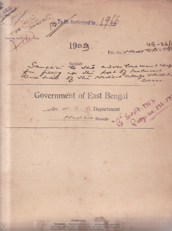 | Rack No. 10, Bundle No. 124, Sl No. 10266 Consumable Questions regarding development of Tribal area. | Rack No. 10, Bundle No. 124, Sl No. 10267 Submission of received for 1952-53 and Budget estimates 153-54 to A.G. and Finance department. | Rack No. 10, Bundle No. 124, Sl No. 10268 Forecast budget estimate 1953-54 under change in England. | Rack No. 10, Bundle No. 124, Sl No. 10269 Sanction to the advancement to change for Filling of the host dental of D.M.C. Dacca. | Rack No. 10, Bundle No. 124, Sl No. 10270 Proposal for re3ation of the post of a midwife in each of Sub-divisional proved. Hospital. | Rack No. 10, Bundle No. 124, Sl No. 10271 Sanction to the repairs and parting of furniture of the out-patients department of the Sadar Hospital Comilla. | Rack No. 10, Bundle No. 124, Sl No. 10272 Central nursing council sister Marievienney Resignation. |