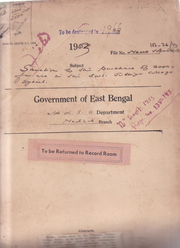 Sanction to the purchase to books for use in the East Tibbiya College Sylhet.