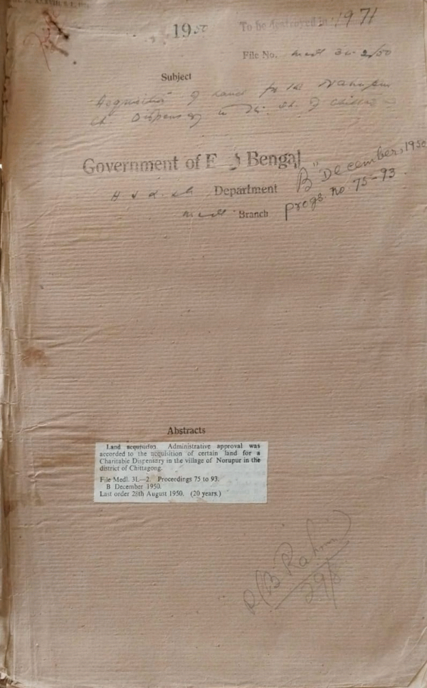 Acquisition of Land for the Norupur Ch. Dispensary in the District of Chittagong.