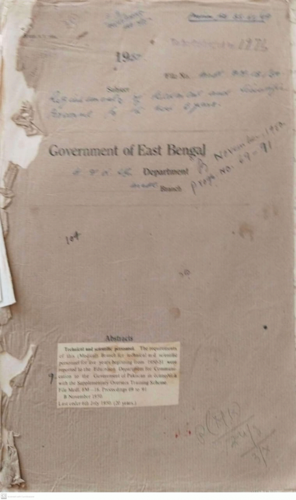 | Rack No. 09, Bundle No. 104, SI No. 8333 Sanction to the investigation of the arrear Claims of Dr. P.C. Kundu. | Rack No. 09, Bundle No. 104, SI No. 8334 Registration of Foreigners arriving in Pakistan Instructions fro | Rack No. 09, Bundle No. 104, SI No. 8335 Terms to be allowed to the non-official leaders of important delegations. | Rack No. 09, Bundle No. 104, SI No. 8336 Requirements of technical and scientific Personnel for the next 5 years. | Rack No. 09, Bundle No. 104, SI No. 8337 Petition from Mst. Halima Khatoon, a 3rd year Student, O.M.S. for exemption from payment of arrear dues on re-admission. | Rack No. 09, Bundle No. 104, SI No. 8338 Verification of the leave steatement of Sri Bhupendra Nath Sil late Cashier of the Mitford Hospital. | Rack No. 09, Bundle No. 104, SI No. 8339 Repair of damaged T.B. Segregation Hospital, Mymentsingh. |