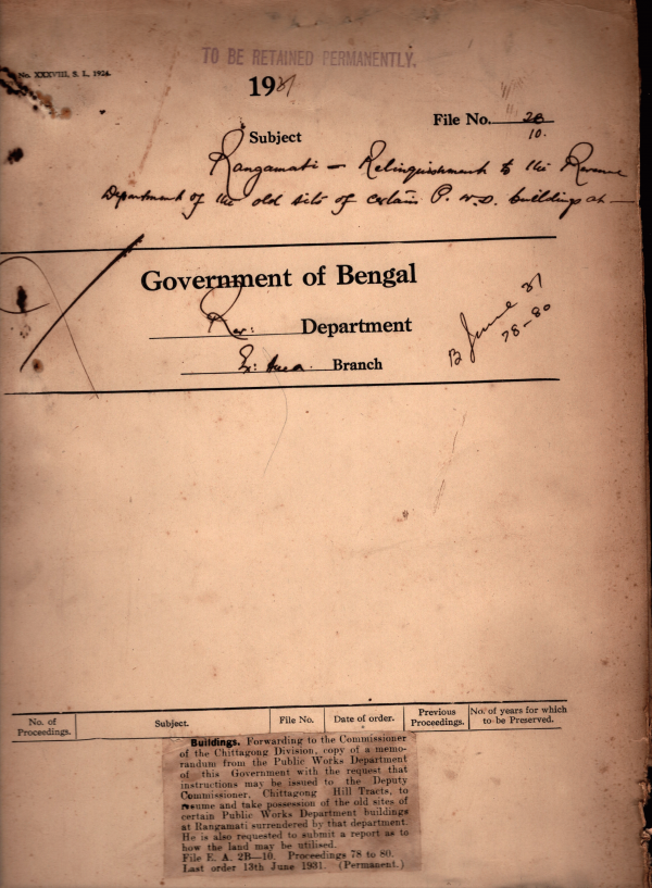 Surrender to the Revenue Department of Certain old sites on which certain buildings stood at the Rangamati in the Chittagong Hill Tracts.