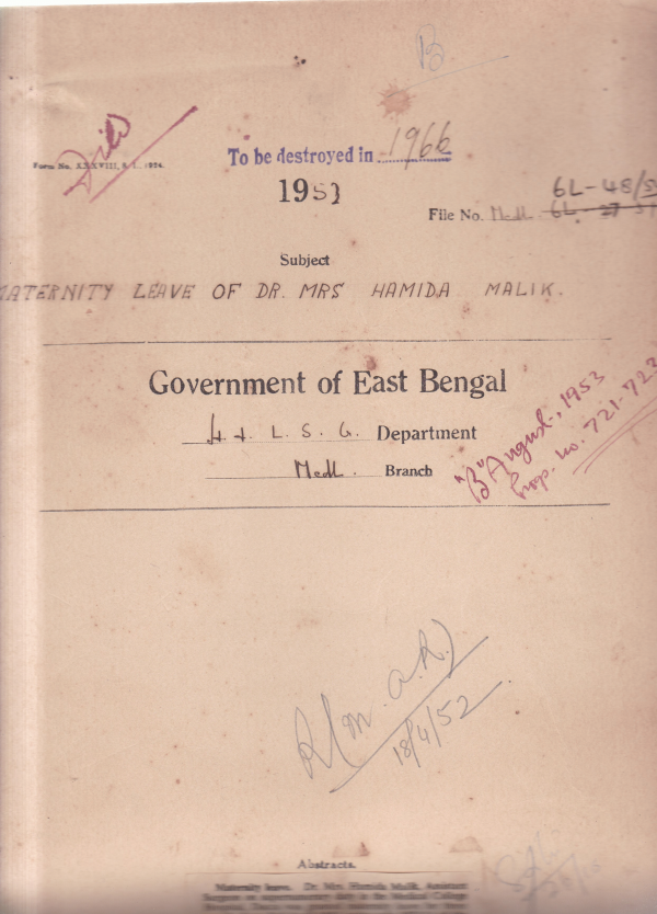 | Rack No. 10, Bundle No. 124, Sl No. 10284 Special pay of Dr. Syed Ahmed Hamid M.S. Rangpur for acting as C.S. Rangpur. | Rack No. 10, Bundle No. 124, Sl No. 10285 Grant of extension of leave or medical ground to Govt. Servants on leave in India. | Rack No. 10, Bundle No. 124, Sl No. 10286 Resignation of major F.W. Allinson Prof. of surgery D.M.C. | Rack No. 10, Bundle No. 124, Sl No. 10287 Maternity leave of Dr. Mrs. Hamida Malik. | Rack No. 10, Bundle No. 124, Sl No. 10288 Appointment of Dr. Maniruzzaman, S.K. Abdus Sobhan, S.K. Abdus Quamarul Huq as demonstrators of Anatomy medical college Dacca. | Rack No. 10, Bundle No. 124, Sl No. 10289 Sadar and sub-divisional hospitals Kustia concurrence of Finance Department. | Rack No. 10, Bundle No. 124, Sl No. 10290 Special pay Dr. Debabrato Chakrabarty demonstrator of anatomy Lytton medical school Mymensingh. |