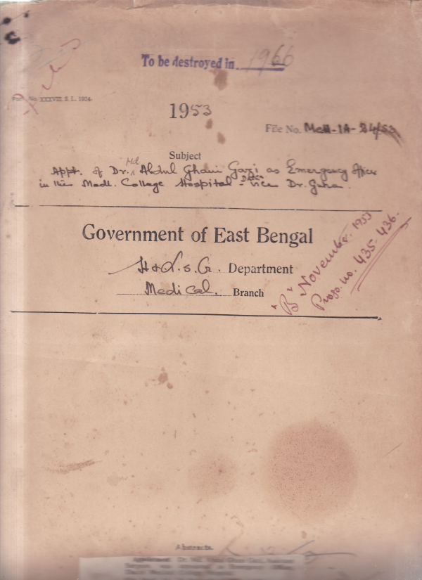 Appointment of Dr. A. Ghani Gazi A.S. as emergency officer in the medical college hospital Dacca.