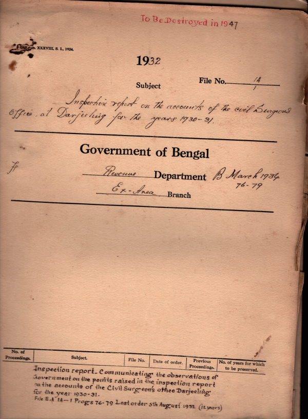 Inspection Report on the accounts of the Civil Surgeon's office Darjeeling.