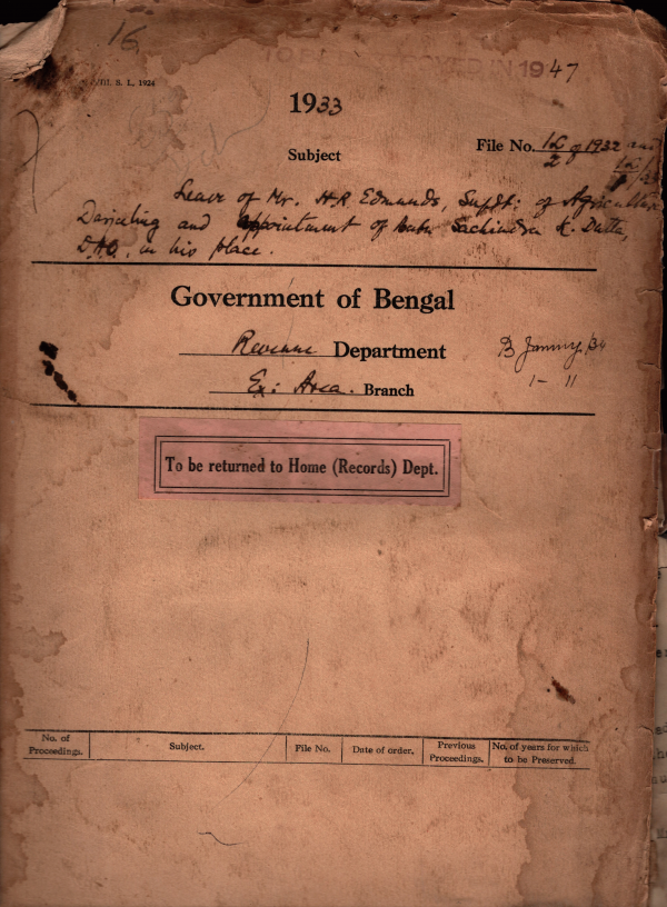 Babu Sachindra Krishna Datta, District Agricultural officer is appointed at act in the Bengal lower Agricultural Service as the Superintendent Agricultural Darjeeling.