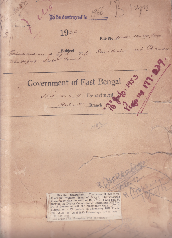 Establishment of a T.B. Sanatarium at Phroomni, Chittagong Hill Tracts.