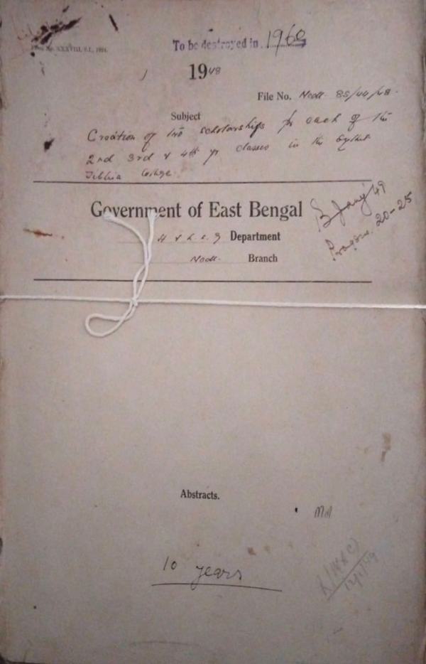 | Rack No. 09, Bundle No. 105, SI No. 8423 List of drawing & disbursing officers fewer than 38 medicals. | Rack No. 09, Bundle No. 105, SI No. 8424 Construction of Garage for the ambulances Supplied to Chittagong. | Rack No. 09, Bundle No. 105, SI No. 8425 Payment of arrear charges for the current financial year under the head Development Program, Dacca. | Rack No. 09, Bundle No. 105, SI No. 8426 Creation of two scholarships for each of the 2nd, 3rd & 4th year classes in the Sylhet Tibbia College. | Rack No. 09, Bundle No. 105, SI No. 8427 Payment of rent in connection with opening an Eye Stall at the Exhibition held in the old govt. House, Dacca. | Rack No. 09, Bundle No. 105, SI No. 8428 Transfer of control of dispensaries in the Chittagong Hill-Tracts from the Surgeon general with the govt. of East Bengal. | Rack No. 09, Bundle No. 105, SI No. 8429 Proposal for shifting of the Refaitpur A.G. Hospital to the new site at Kushtia. |