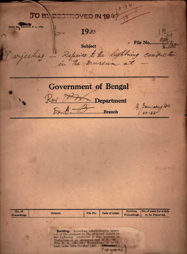 Repairs to the lightning conductor in the Museum at Darjeeling.