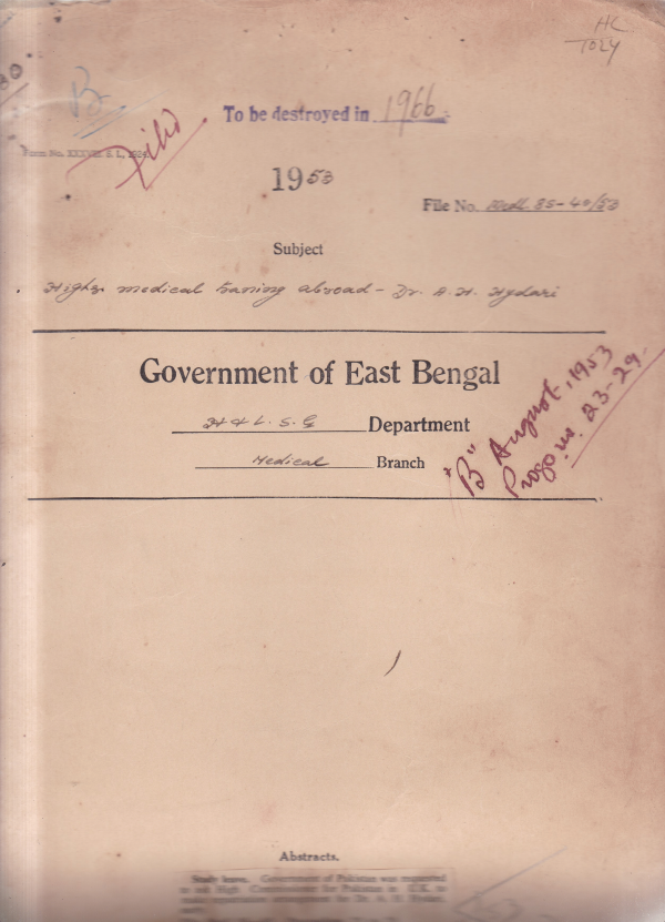 Higher Medical Training Abroad Dr. A.H. Hydari.
