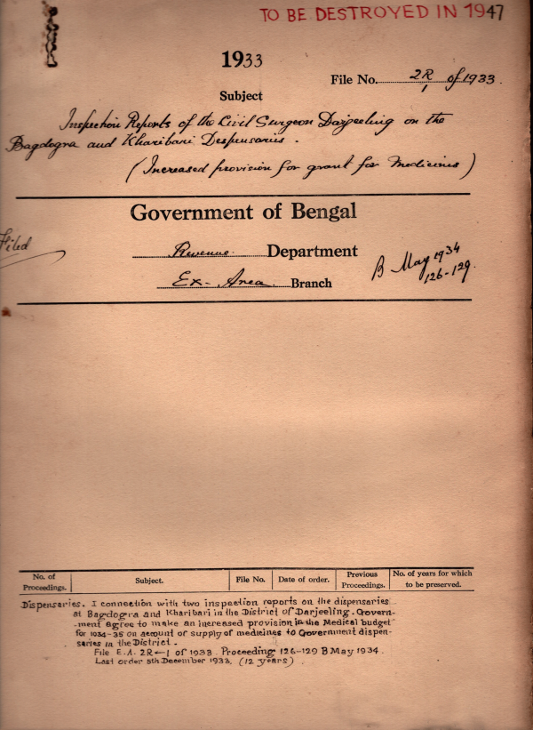 Inspection Reports of the Civil Surgeon Darjeeling on the Bagdoyra and Kharibari Dispensaries.