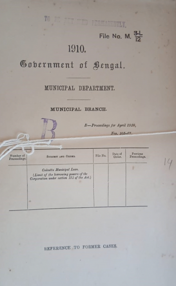 | Rack No. 12, Bundle No. 01 Sl No. 11 Premature withdrawal of Loan Funds from the Treasury. | Rack No. 12, Bundle No. 01 Sl No. 12 Improvement of the Sanitary condition of the Telinipara bustee of the Bhadreswar Municipality. | Rack No. 12, Bundle No. 01 Sl No. 13 Revision of the boundary of Howrah Municipality. | Rack No. 12, Bundle No. 01 Sl No. 14 Calcutta Municipal Loan. | Rack No. 12, Bundle No. 01 Sl No. 15 Drainage of the Fringe Area and Distribution of the cost of Special Land Acquisition officer employed on behalf of the Calcutta Corporation and the Port Commissioners. | Rack No. 12, Bundle No. 01 Sl No. 16 Imposition of a tax on holdings in lieu of the tax on Persons within the Cattack Municipality, | Rack No. 12, Bundle No. 01 Sl No. 17 Proposal of the Patna Municipality to withdraw Part IX of the Bengal Municipal Act from the Pirbahore and Bankipore wards of that Municipality. |