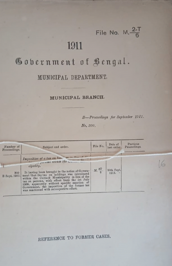 Imposition of a tax on holdings in lieu of the tax on Persons within the Cattack Municipality,