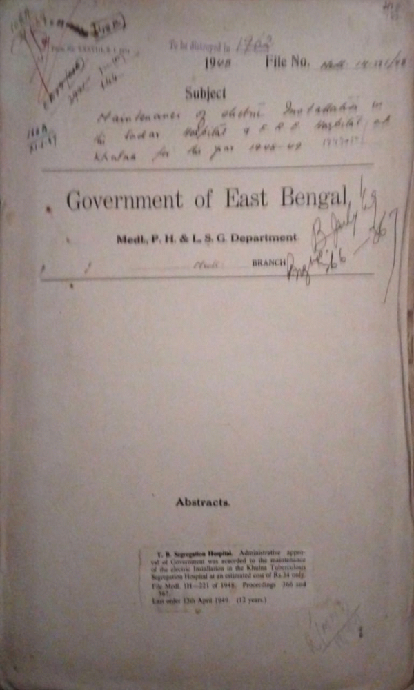 | Rack No. 09, Bundle No. 105, SI No. 8430 Compliance for payment incurred in Calcutta to Purchase packing boxes and straw in cash. | Rack No. 09, Bundle No. 105, SI No. 8431 Donation of R.S. 1500/- in the form of 3 Sets of medical instruments by Mvi. A.F.M Abdul Ali President U. Bd. for the Garanpara A.G. Hospital. | Rack No. 09, Bundle No. 105, SI No. 8432 Partition Transfer of personnel procedure for dealing with employees. | Rack No. 09, Bundle No. 105, SI No. 8433 Maintenance of electric installation in the Sadar Hospital at Khulna. | Rack No. 09, Bundle No. 105, SI No. 8434 Information in connection with adaptation of Drugs Act 1940 and Rules framed threaded. | Rack No. 09, Bundle No. 105, SI No. 8435 Petition from the students Dacca Medical Hospital for exemption further tuition fees. | Rack No. 09, Bundle No. 105, SI No. 8436 Recognition of Homeopathy Supply of copy etc. of Act. |