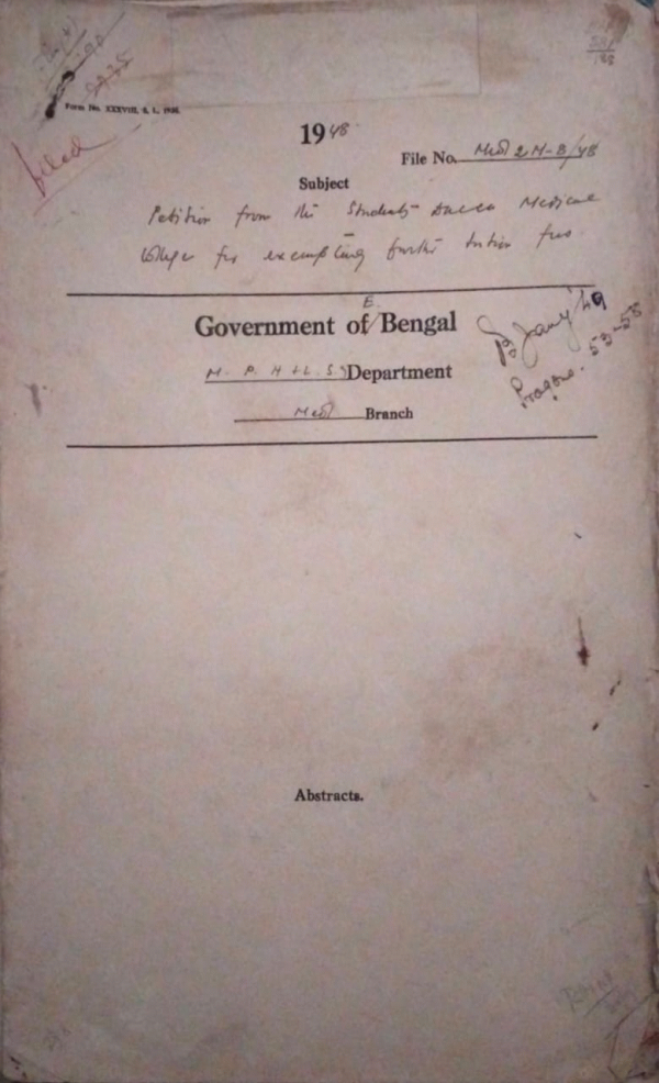 | Rack No. 09, Bundle No. 105, SI No. 8432 Partition Transfer of personnel procedure for dealing with employees. | Rack No. 09, Bundle No. 105, SI No. 8433 Maintenance of electric installation in the Sadar Hospital at Khulna. | Rack No. 09, Bundle No. 105, SI No. 8434 Information in connection with adaptation of Drugs Act 1940 and Rules framed threaded. | Rack No. 09, Bundle No. 105, SI No. 8435 Petition from the students Dacca Medical Hospital for exemption further tuition fees. | Rack No. 09, Bundle No. 105, SI No. 8436 Recognition of Homeopathy Supply of copy etc. of Act. | Rack No. 09, Bundle No. 105, SI No. 8437 Drugs Act 1940 manufacture and sale of Drugs. | Rack No. 09, Bundle No. 105, SI No. 8438 Additional pay to S.A.S. Dr. Hafizul Rahman of Sadar Hospital, Rajshahi. |