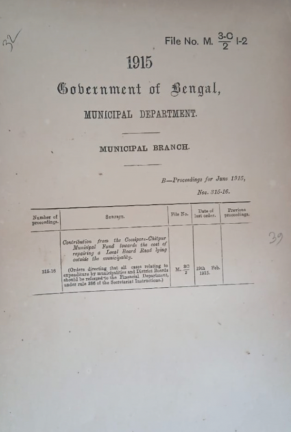 Contribution from the Cosspore-Chitpur Municipal of local lying outside the Municipality.