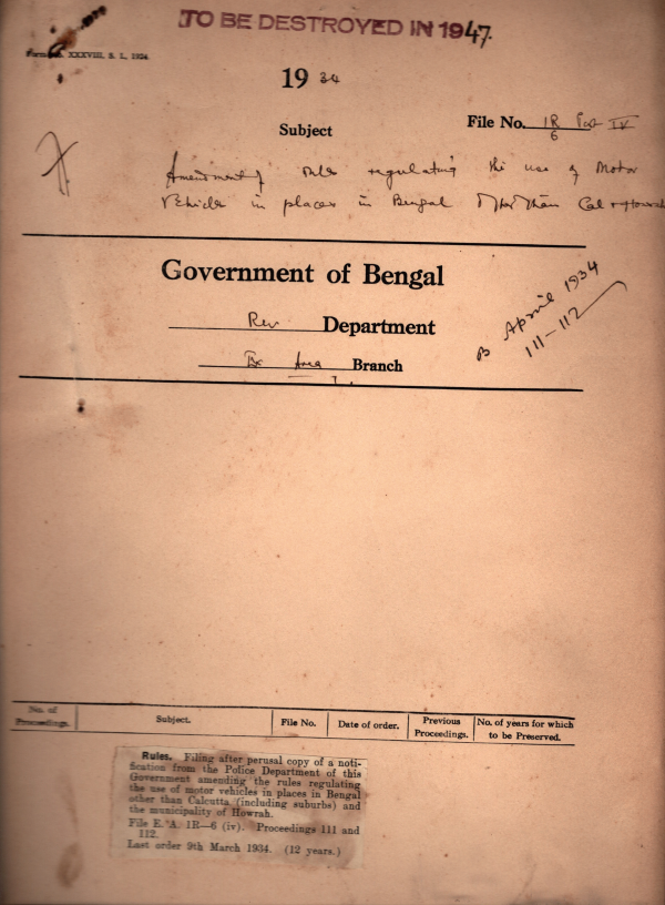 Amendment rule regulating the use of motor vehicles in place in Bengal other than Calcutta and Howrah.