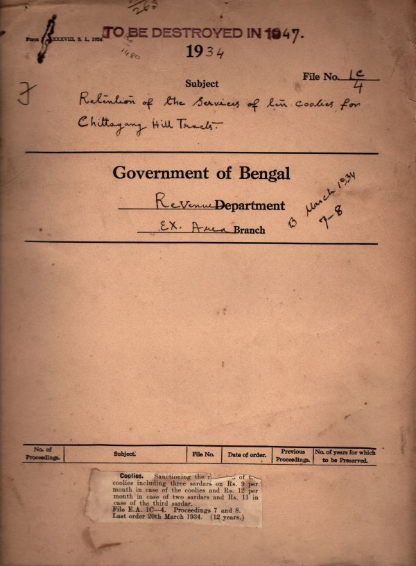 Retention of the services of ten coolies for Chittagong Hill Tracts.