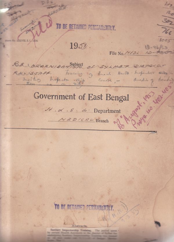 | Rack No. 10, Bundle No. 123, Sl No. 10228 Sanction to the payment of Demurrage charges by chemical examiner E. Pakistan. | Rack No. 10, Bundle No. 123, Sl No. 10229 Retention of the post of 2nd ward master, Mitford Hospital Dacca. | Rack No. 10, Bundle No. 123, Sl No. 10230 Declaration of A.S.G. (Stores) as drawing and disbursing officer in respect of the contingent charges of the Laundray Plant, Tejgaon. | Rack No. 10, Bundle No. 123, Sl No. 10231 Training of Rural Health Inspector in Sanitary inspectorships Course. | Rack No. 10, Bundle No. 123, Sl No. 10232 Spl. pay of Dr. T.H. Basunia for doing the duties of the teacher of Pharmacology in additional to his own duties. | Rack No. 10, Bundle No. 123, Sl No. 10233 Recruitment to central services made on a local basis as against all-Pakistan. | Rack No. 10, Bundle No. 123, Sl No. 10234 Allotment for telephone rent bill for 1952-53. |