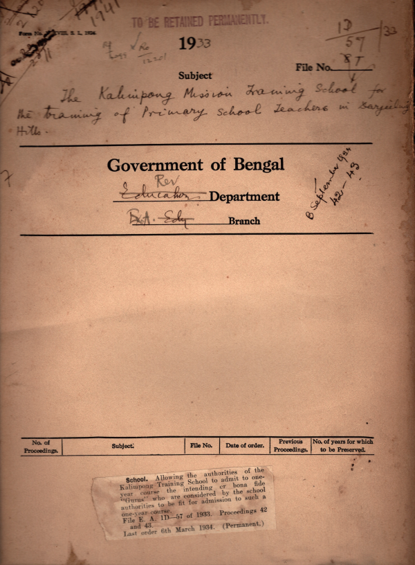 Allowing the authorities of the Kalimpong Training School to admit to one year course the intending or bona-fide "Gurus" who are considered by the school authorities to be fit for the school authorities to be fit for admission to such a one year course.