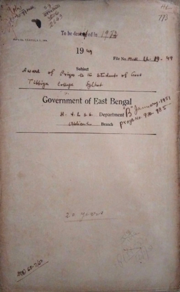 | Rack No. 09, Bundle No. 105, SI No. 8476 Classical of govt. Servants in respect of Drivers. | Rack No. 09, Bundle No. 105, SI No. 8477 Realization of pensioner charges from the provinces of Indian Dominion. | Rack No. 09, Bundle No. 105, SI No. 8478 Release of recovered criminal lunatic Moktar Ali Howladar. | Rack No. 09, Bundle No. 105, SI No. 8479 Award of Prizes to the students of govt. Tibbiya College, Sylhet. | Rack No. 09, Bundle No. 105, SI No. 8480 Section of a post of Assistant Surgeon for the Manikganj Sub-Divisional Dispensary. | Rack No. 09, Bundle No. 105, SI No. 8481 Case against Kazi Abdul Mazid Head Clerk, civil Surgeon office, Kushtia for taking illegal gratification. | Rack No. 09, Bundle No. 105, SI No. 8482 Grant of Sea-Passage to the family of Dr. E.V. Novak, Prof. of Clinical Surgeon Medical College, Dacca. |