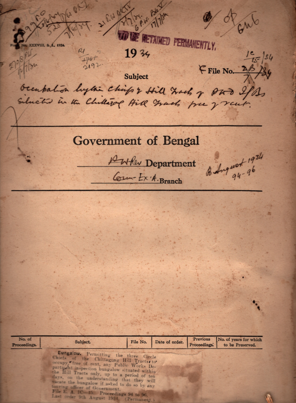 Occupation by the Chief of Hill Tracts of PWD Bangalow situated in the Chittagong Hill Tracts free of rent.