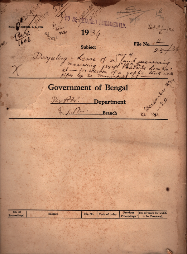 Erection of Septic Tank with outlet Pipes in the P.W.D. land known as Khudside Location Darjeeling by the Darjeeling Municipality