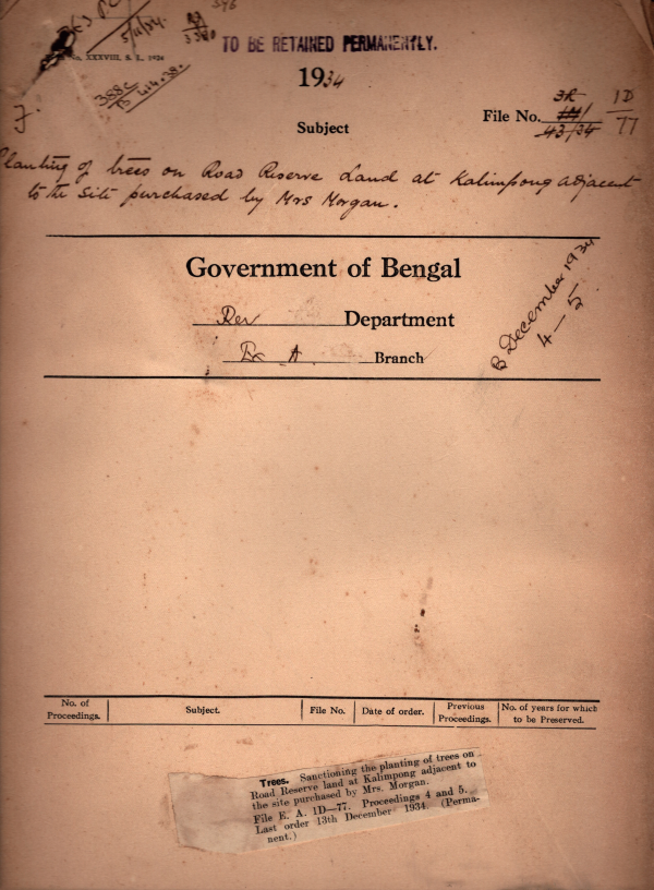 Sanctioning the Planting of trees on Road Reserve land at Kalimpong adjacent to the side purchased by Mr. Morgan.