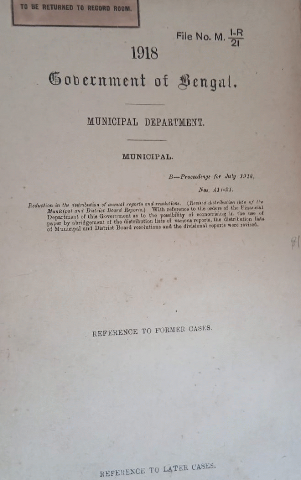 | Rack No. 12, Bundle No. 01 Sl No. 76 Representation from the European Association regarding Amendment of the Calcutta Municipal Act. | Rack No. 12, Bundle No. 01 Sl No. 77 LA. of Comprised in Calcutta Improvement Scheme. | Rack No. 12, Bundle No. 01 Sl No. 78 Re-appointment Mr. Bompas as Chairman of the Calcutta Improvement Trust, his leave and appointment of Mr. Reterson to act in his place. | Rack No. 12, Bundle No. 01 Sl No. 81 Reduction in the Distribution of annual reports and resolutions. | Rack No. 12, Bundle No. 01 Sl No. 82 Acquisition of land by the Calcutta Improvement trust for a Park at Ram Kissen Dass Lane. | Rack No. 12, Bundle No. 01 Sl No. 83 Calcutta Improvement trust (L.A. for open space in Maniktala). | Rack No. 12, Bundle No. 01 Sl No. 84 Alteration of the name of the "South Barrackpore Municipality to "Khardah Municipality. |