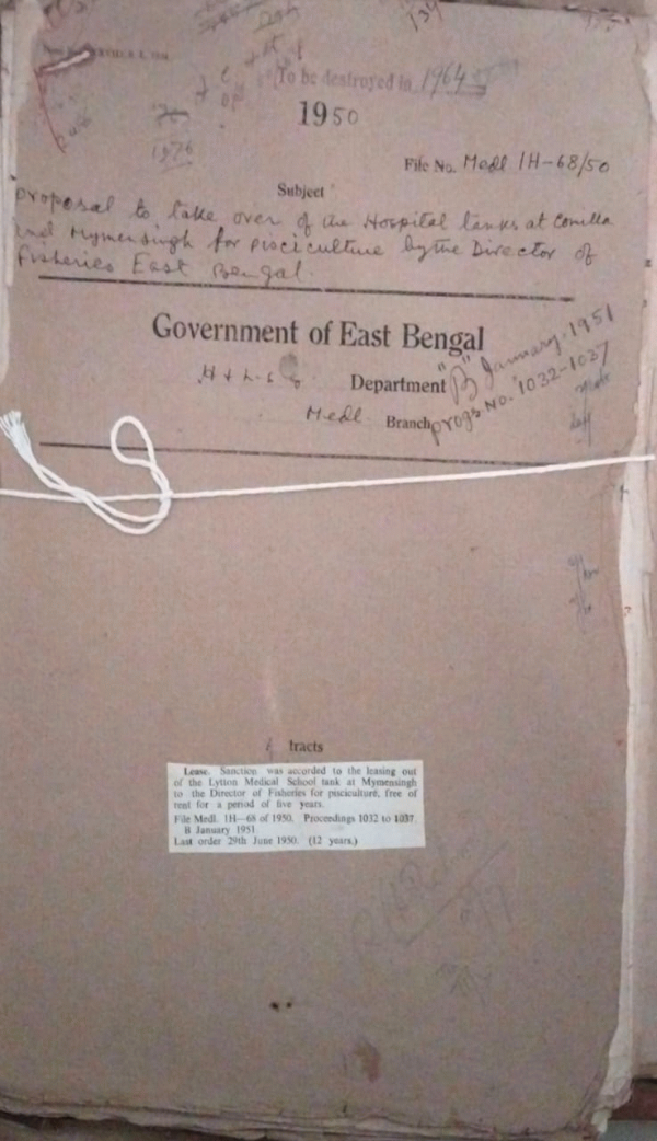 | Rack No. 09, Bundle No. 105, SI No. 8503 Constitution of the Managing Committee of the Rouzan State Orphanage. | Rack No. 09, Bundle No. 105, SI No. 8504 Appointment of travel Agent for arrangement of passage for central scholars sponsored by the Pakistan govt. | Rack No. 09, Bundle No. 105, SI No. 8505 Premature retirement of European officers of non-secretary of state's service. | Rack No. 09, Bundle No. 105, SI No. 8506 Proposal to take over of the Hospital tanks at Comilla and Mymensingh to the Director of Fisheries for pisci-culture. | Rack No. 09, Bundle No. 105, SI No. 8507 Estimates from Certain repairs and improvement of Chittagong general Hospital. | Rack No. 09, Bundle No. 105, SI No. 8508 Repairs of the T.B. Segregation Hospital at Hemayetpur in District of Pabna. | Rack No. 09, Bundle No. 105, SI No. 8509 Facilities for training in compounding and Dispensing. |