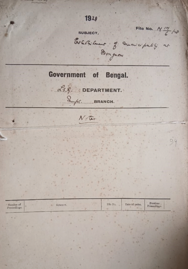 | Rack No. 12, Bundle No. 02 Sl No. 138 Adoption of rule 8 A. to the P.F. Rules by Dacca Municipality. | Rack No. 12, Bundle No. 02 Sl No. 139 Grant of Rs. 1137/- from the Motor Vehicles Tax for the Construction of a Motor Bus Stand within the Budge Budge Municipality | Rack No. 12, Bundle No. 02 Sl No. 140 Supply of all general orders regarding transferred Subjects to the Revenue Department. | Rack No. 12, Bundle No. 02 Sl No. 94 Establishment of Municipality at Bongong. | Rack No. 12, Bundle No. 02 Sl No. 95 New Constitution of municipalities in the Rajshahi Division Dinajpur. | Rack No. 12, Bundle No. 02 Sl No. 97 Proposal for the establishment of a municipality at Bongaon. | Rack No. 12, Bundle No. 02 Sl No. 98 Position of the Nator Municipality owing to none of the municipal Commissioners having taken the Oath of allegiance. |