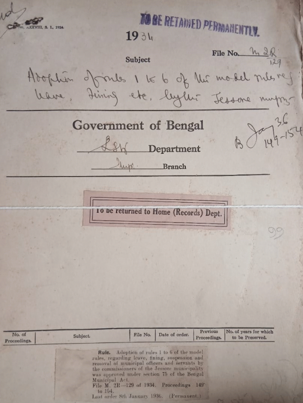 Adoption of rules 1 to 6 of the model rules, regarding fining by the Jessore municipality.