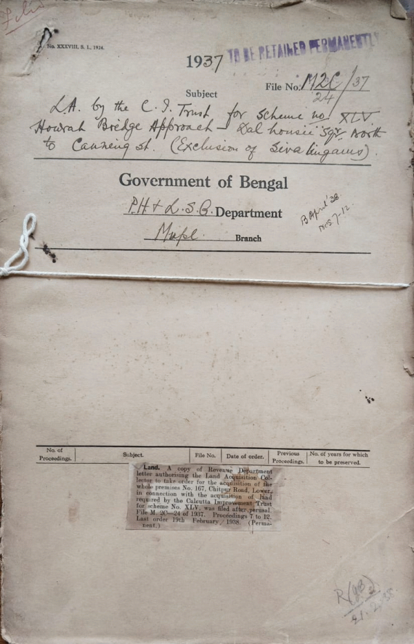 | Rack No. 12, Bundle No. 11, Sl No. 702 Suspension of resolution u/s. 5548(3) of B.M. Act, 1932 (Taki Municipality). | Rack No. 12, Bundle No. 11, Sl No. 703 Proposed amendment of section 2 of the B.M. Act, 1932. | Rack No. 12, Bundle No. 11, Sl No. 704 Redistribution of wards and allocation of seats Chandpur Municipality. | Rack No. 12, Bundle No. 11, Sl No. 705 L.A. by the C.I. Trust for Scheme No. XLV Howrah Bridge Approach. | Rack No. 12, Bundle No. 11, Sl No. 706 L.A. report 1935-36, para 12(a). | Rack No. 12, Bundle No. 11, Sl No. 707 L.A. by the old Malda Municipality for filling up an insanitary ditch. | Rack No. 12, Bundle No. 11, Sl No. 708 L.A. by the Jessore Municipality for the construction of a new road joining Gahata+Lane with Strand road. |