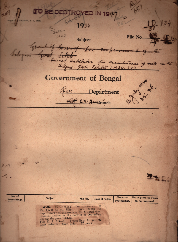Annual Contribution for maintenance at wells in the Siliguri Govt. Estates.