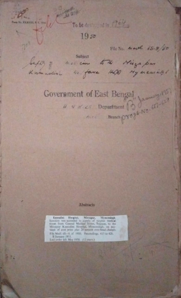 | Rack No. 09, Bundle No. 105, SI No. 8534 Report on the inspection of accounts of Famine and Dinajpur during the year 1946-47. | Rack No. 09, Bundle No. 105, SI No. 8535 Opening of new detailed head sale proceeds of movable assets of evacuees u/h. | Rack No. 09, Bundle No. 105, SI No. 8536 Non-availability of Cotton Wool in Pakistan. | Rack No. 09, Bundle No. 105, SI No. 8537 Supply of Medicine to the Mirzapur Kumudini welfare Hospital, Mymensingh. | Rack No. 09, Bundle No. 105, SI No. 8538 Question whether the central govt. employees are entitled to charge fees for medical attendance. | Rack No. 09, Bundle No. 105, SI No. 8539 Re-opening of a class for training of Midwives in the Mitford Hospital, Dacca. | Rack No. 09, Bundle No. 105, SI No. 8540 Pay of Mvi. Ghazi Noor Md. Late Accountant Civil Surgeons office, Mymensingh. |