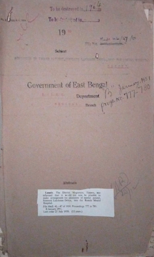 | Rack No. 09, Bundle No. 105, SI No. 8542 Revised Budget estimate for the year 1950-51. | Rack No. 09, Bundle No. 105, SI No. 8543 Provincial of Medical and Public Health Services in the district of Bogra. | Rack No. 09, Bundle No. 105, SI No. 8544 Advertisement bills from different news paper agencies in connection with the recruitment of Subs-Assistant Surgeon in the E.P.M.S. | Rack No. 09, Bundle No. 105, SI No. 8545 Admission of insane patient into Mental Hospital, Ranchi. | Rack No. 09, Bundle No. 105, SI No. 8546 Proposal for requisition of houses for accommodation of students of the Dacca Medical School. | Rack No. 09, Bundle No. 105, SI No. 8547 Sanction committee for admission of students into the Mymensingh Medical School, 1950-51. | Rack No. 09, Bundle No. 105, SI No. 8548 Materials for three years of Pakistan to be issued by the govt. of Pakistan. |