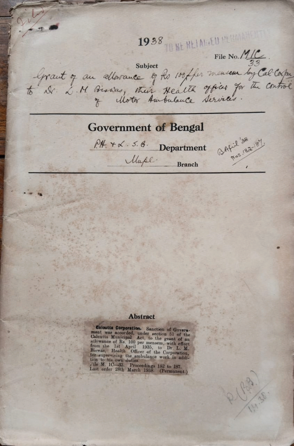 Grant of an allowance of Rs. 100/- per mensem by Cal. Corporation to Dr. L.M. Biswas, their Health officer for the control of Motor Ambulance Services.