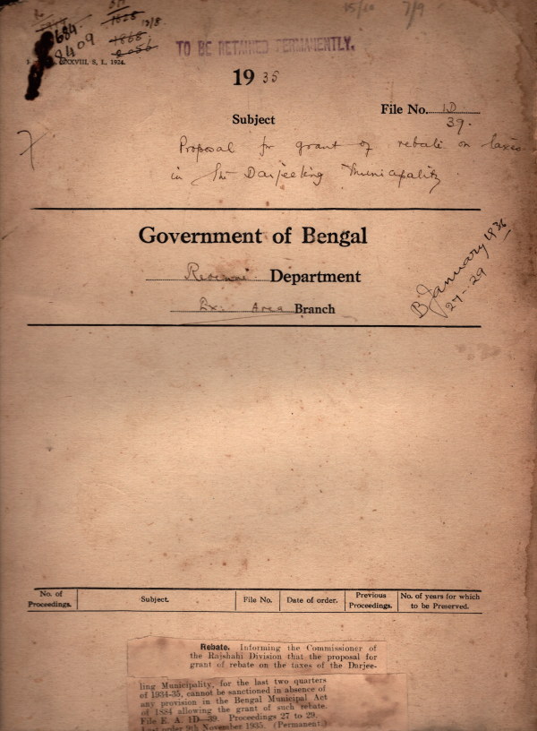 Proposal for grant of refuel on taxes in the Darjeeling Municipality.