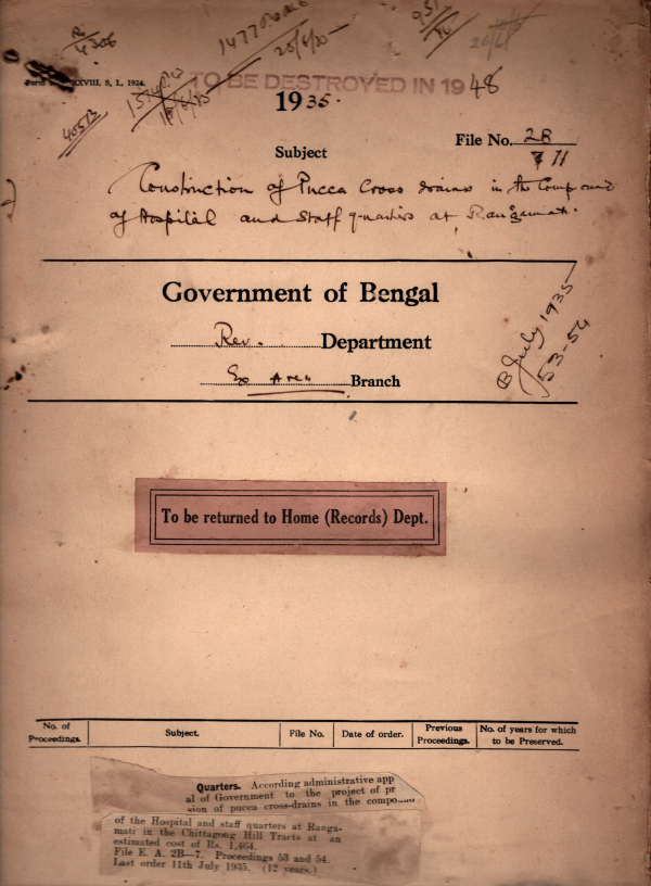 Constitution of Pucca Cross-drains in the compound Hospital and staff quarters at Rangamati.
