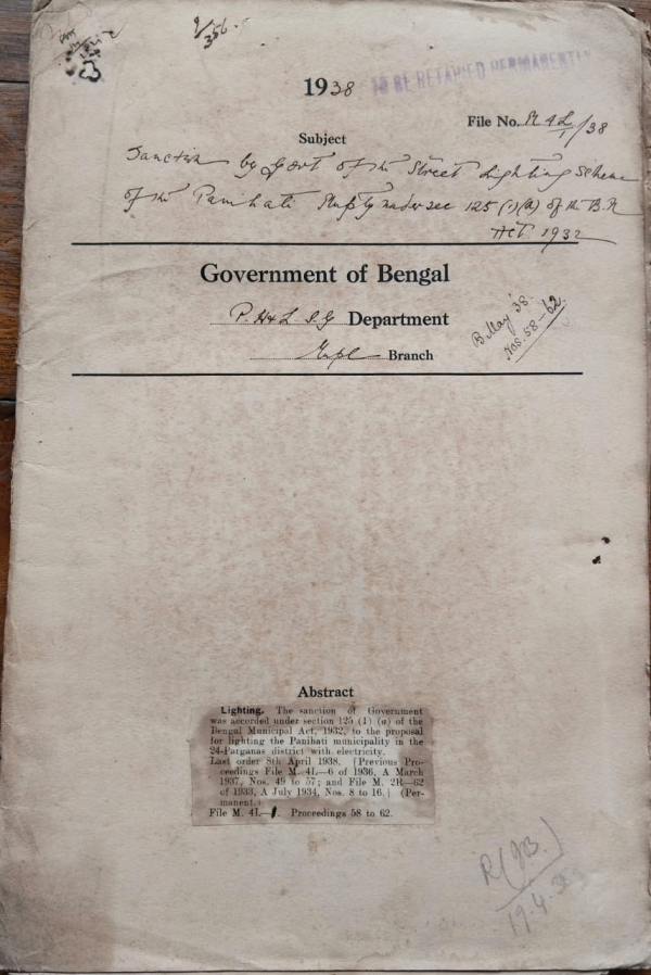| Rack No. 12, Bundle No. 11, Sl No. 752 Amendments to the fundamental and Subsidiary Rules under Section 241 of Govt. of India Act, 1935. | Rack No. 12, Bundle No. 11, Sl No. 753 Transfer of a Piece of land comprising the road and its side slopes on the south of the College Compound at Chittagong. | Rack No. 12, Bundle No. 11, Sl No. 754 Loan of Rs. 20,000/- for improvement of Roads, Jessore Municipality. | Rack No. 12, Bundle No. 11, Sl No. 755 L.A. by the Kushtia Municipality for a burial ground in the village of Chourbans. | Rack No. 12, Bundle No. 11, Sl No. 756 Proposal for lighting the Panihat Municipality in the 24 parganas district with electricity. | Rack No. 12, Bundle No. 11, Sl No. 757 Inspection Note-Bogra Municipality. | Rack No. 12, Bundle No. 11, Sl No. 758 Assessment of the properties of the port commissioner by the Howrah Municipality. |