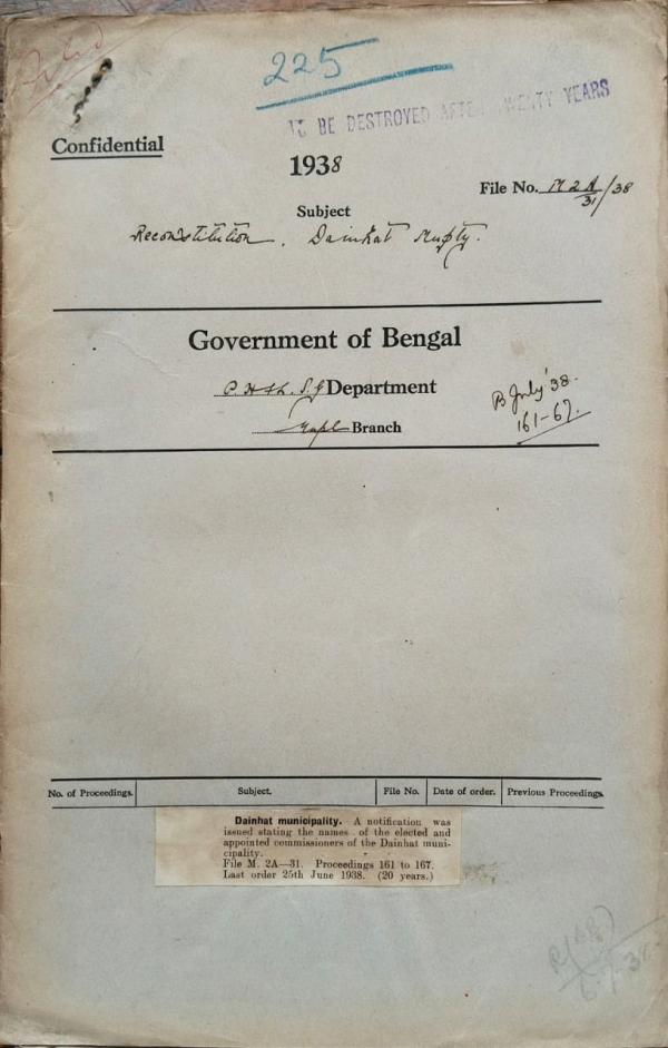 | Rack No. 12, Bundle No. 11, Sl No. 757 Inspection Note-Bogra Municipality. | Rack No. 12, Bundle No. 11, Sl No. 758 Assessment of the properties of the port commissioner by the Howrah Municipality. | Rack No. 12, Bundle No. 11, Sl No. 759 L.A. by the Khulna Municipality for extension of Mirzapur Road. | Rack No. 12, Bundle No. 11, Sl No. 760 Reconstitution Dainhat Municipality. | Rack No. 12, Bundle No. 12, Sl No. 761 Safe Custody of Municipal fund Birnagar Municipality. | Rack No. 12, Bundle No. 12, Sl No. 762 Adoption of the new P.F. Rule 5 by the Jessore Municipality. | Rack No. 12, Bundle No. 12, Sl No. 763 Notes of Audit of the Account of the Midnapur Municipality for 1935-36. |