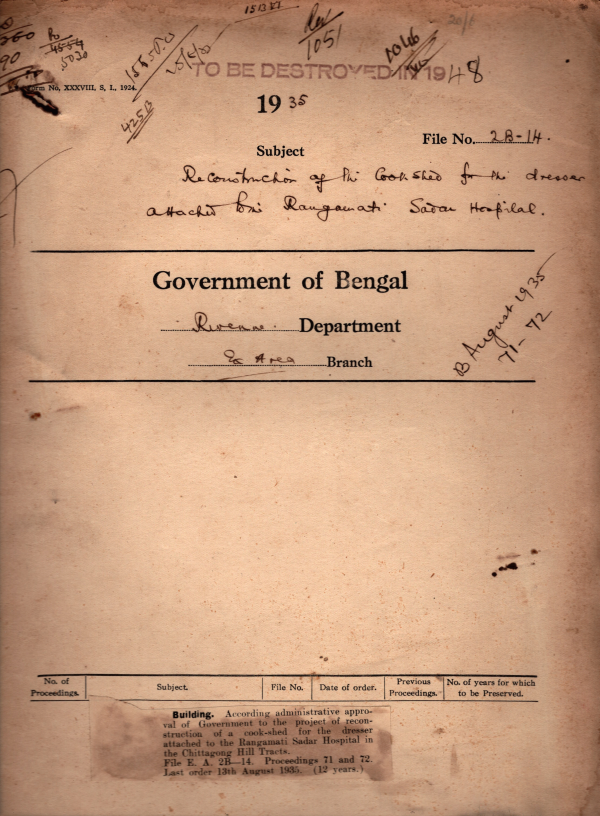 According administrative approval of Government to the Project of reconstruction of a Cook Shed for the dresser attached to the Rangamati Sadar Hospital in the Chittagong Hill Tracts.