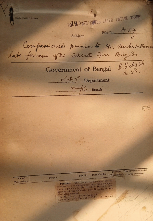 Compassionate pension to Mr. Herbert Durrant, late fireman of the Calcutta fire Bridge.