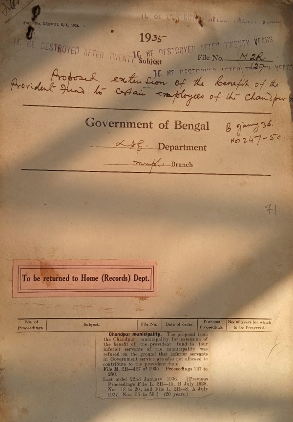 Proposed extension of the benefit of the provident fund to Certain employees of the Chandpur Municipality.