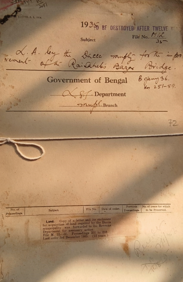 11-35/35 L.A. by the Dacca Municipality for the improvement of the Rajshahi Bazar Bridge.